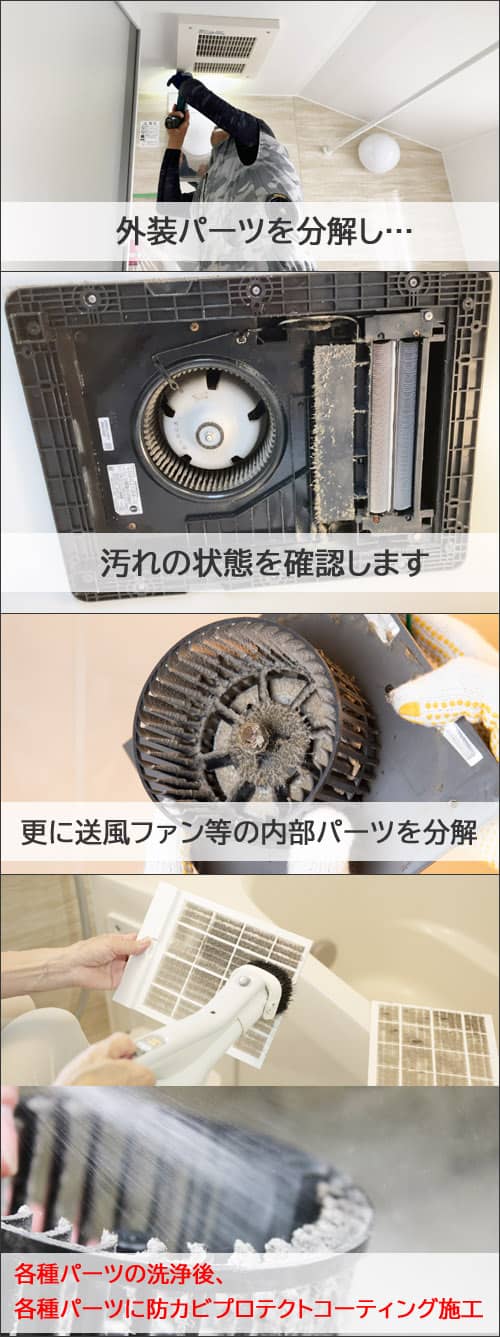 ■サービス名:浴室乾燥機分解クリーニング(カビ汚れ除去・洗浄作業・防カビプロテクトコーティング施工) ■ターゲット:アルミフィン・送風ファン・各種パーツ ■施工方法と効果:アルミフィン・送風ファン・各種パーツにアルカリ性溶剤を噴霧し、既存のぬめり汚れやカビ汚れを洗浄除去。 その後、防カビプロテクトコーティング施工(アルミフィン・送風ファン・各種パーツにアルカリ性防カビ専用溶剤を噴霧) 検出頻度の高い60菌種を含む71菌に対して抑止効果を確認(横浜油脂工業防カビ試験結果) 施工箇所のカビ発生を抑え、清潔に保つことができます。 施工箇所のカビ発生を抑え、清潔に保つことができます。 ■効果持続期間:半年~1年程度※お住まいの環境により、持続期間が変化します ■料金1:19,690円(税込) ■料金2:5,060円(税込)(パーツ分解が不可能なメーカー品・設備品の劣化・分解出来ないような加工が施されている場合等の簡易清掃料金) |
